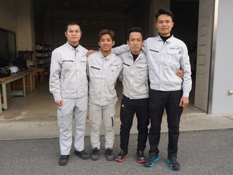 当社では、2005年より、奈良県ビルド工業協同組合や海外事業サポート協同組合の協力を得て、ベトナムや中国から外国人技能実習生をスタッフとして受け入れています。現場で働くために講習会などを開催し、資格の取得もサポートしています。頼りになる実戦力として、現在4名の外国人技能実習生が活躍しています。